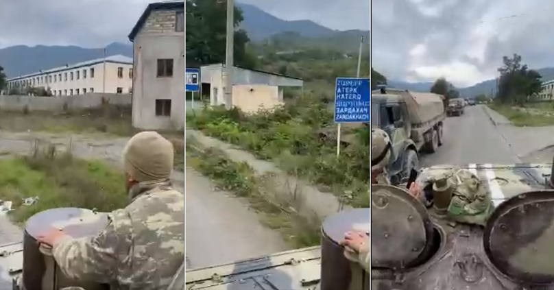 Sosial şəbəkələrdə yayılmış videolarda Azərbaycan ordusunun Qozlukörpüyə girmə anı.