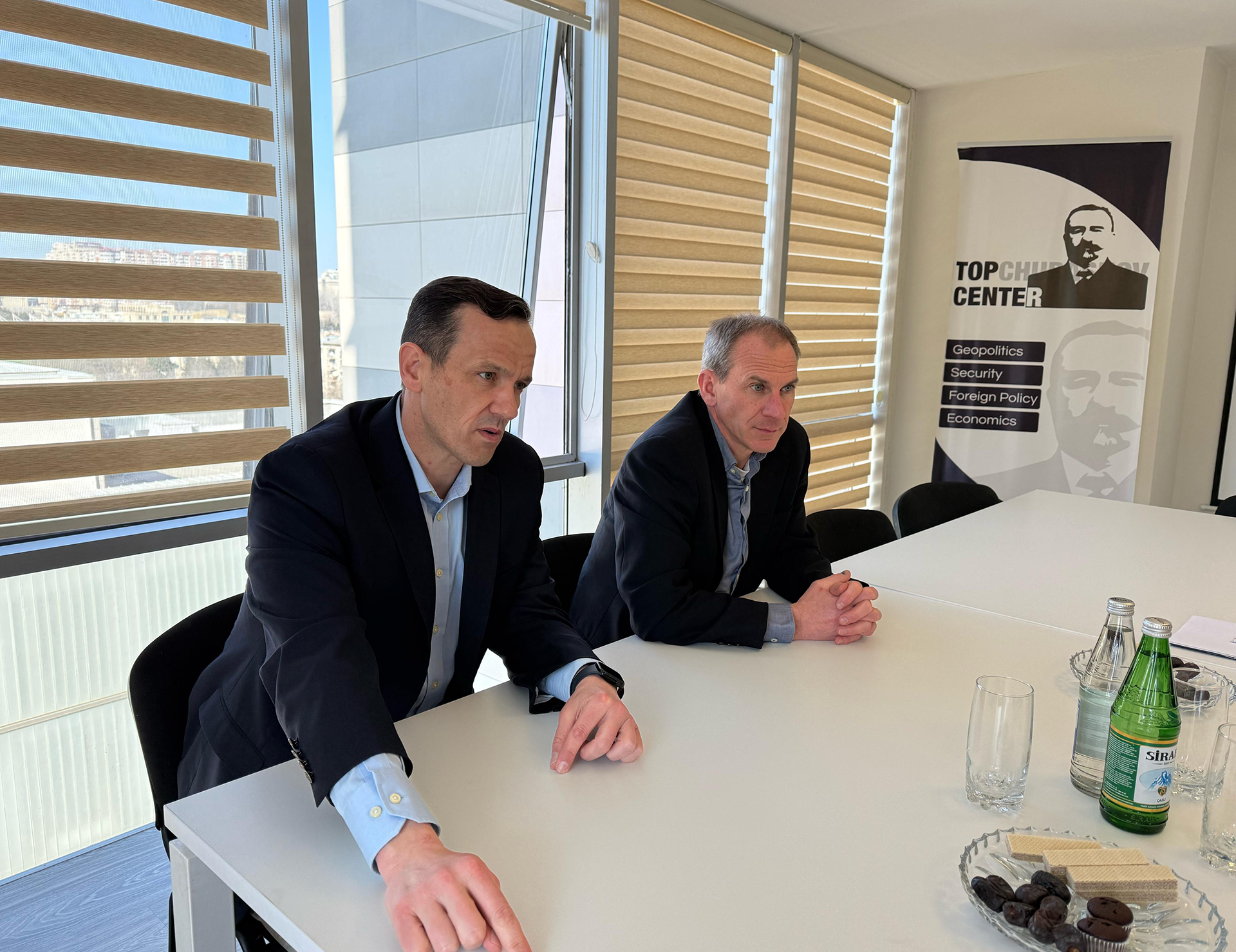 Bu dəfə Topçubaşov Mərkəzində Kollinz və Spenser Mərkəzin direktoru Rusif Hüseynov və tədqiqatçısı Məhəmməd Məmmədov ilə görüşüb. Daha sonra qonaqlar Mərkəzin “Yutub” kanalı üçün video-müsahibədə də iştirak ediblər.